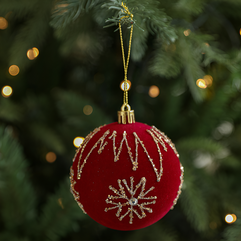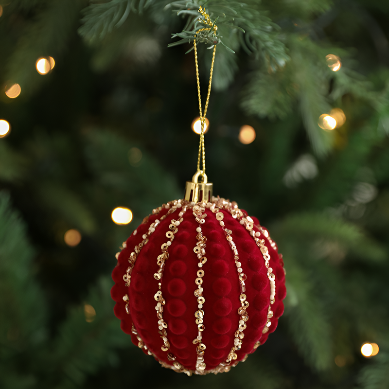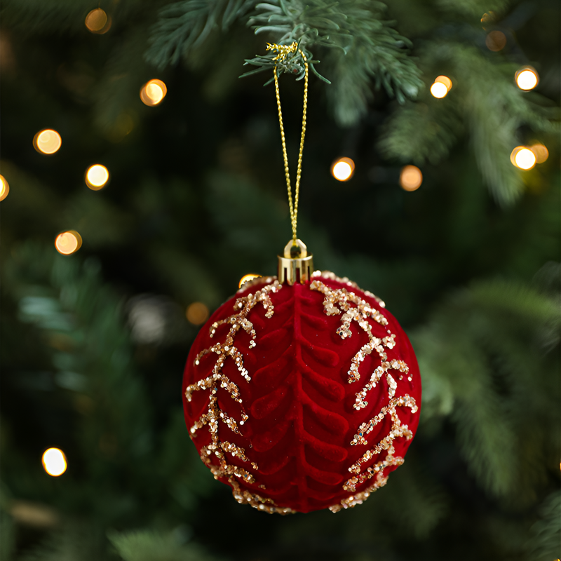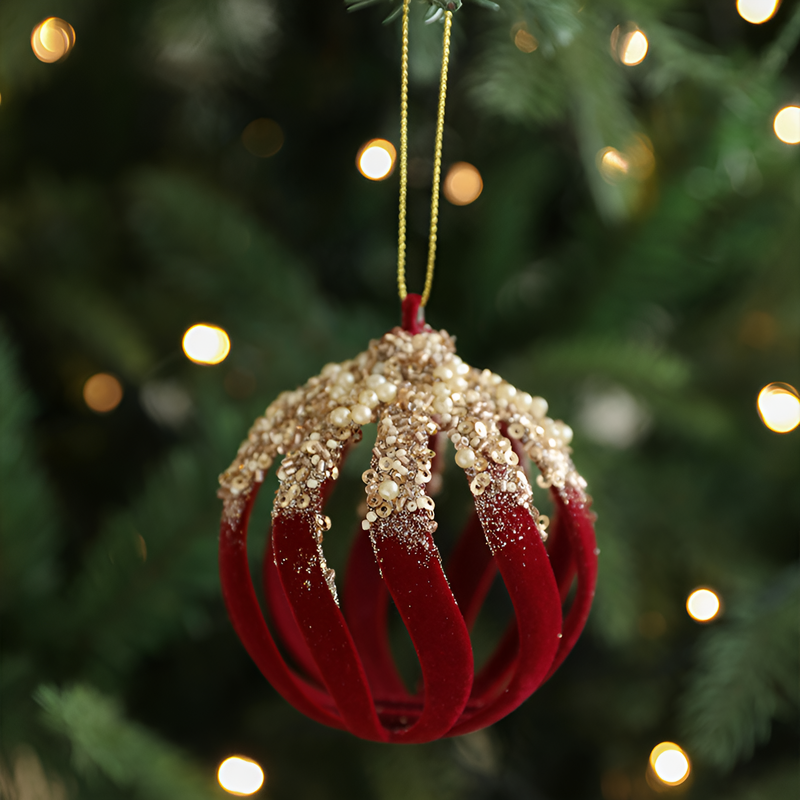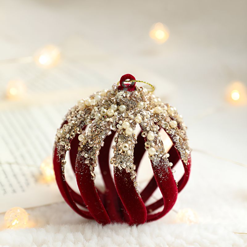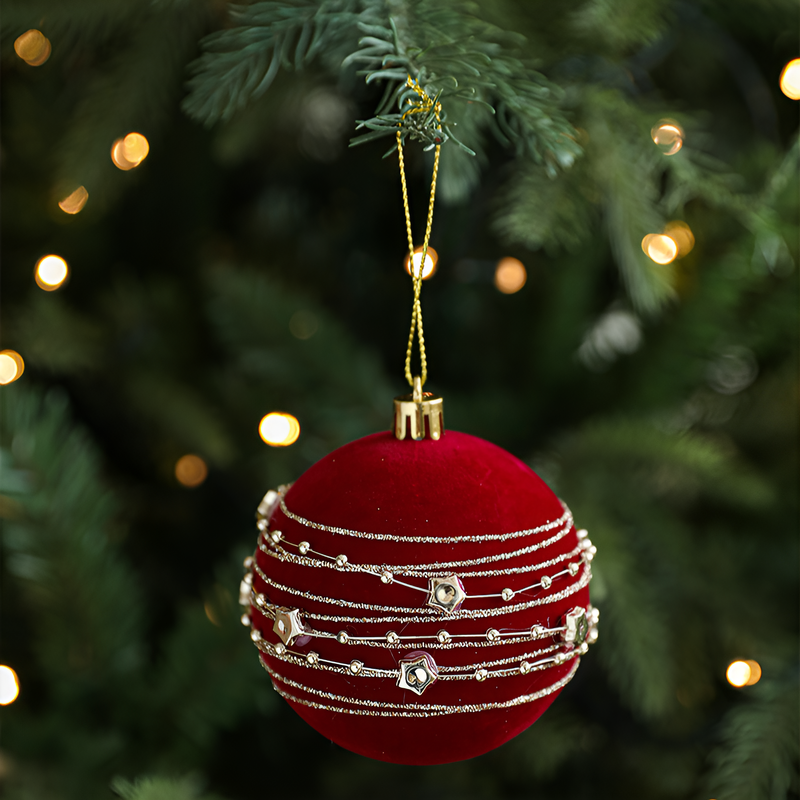 聖誕球酒紅色植絨掛件