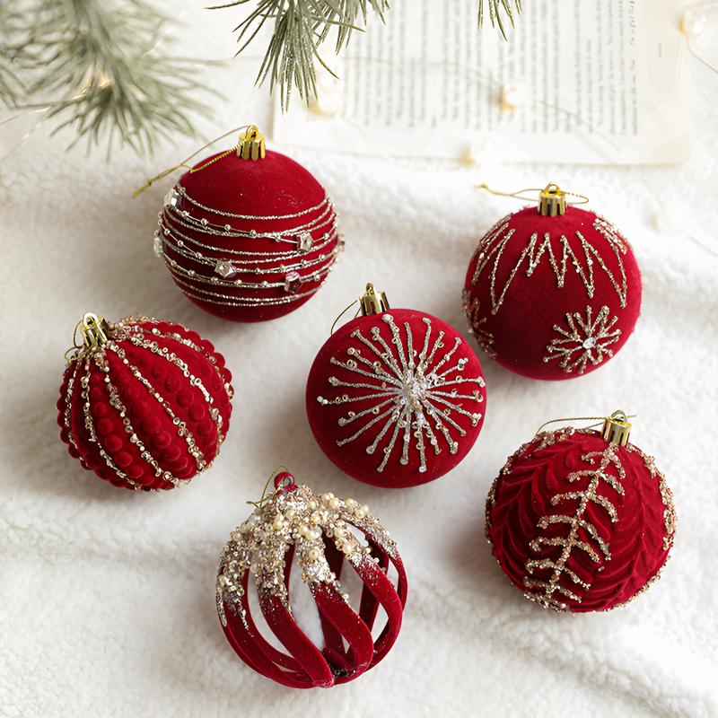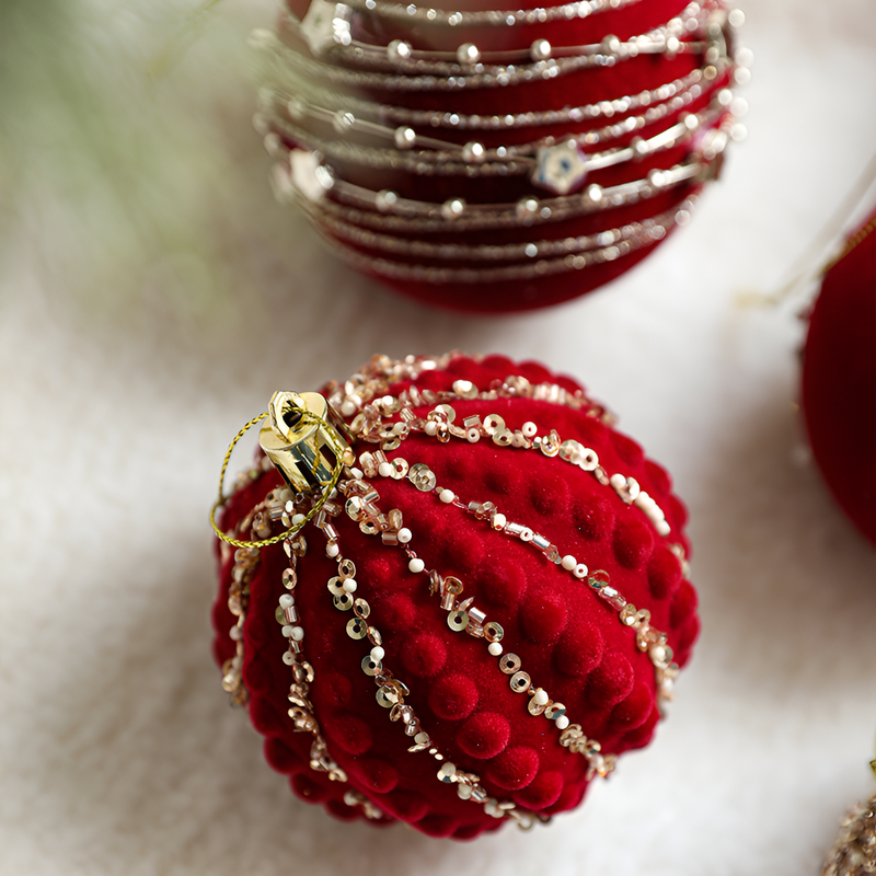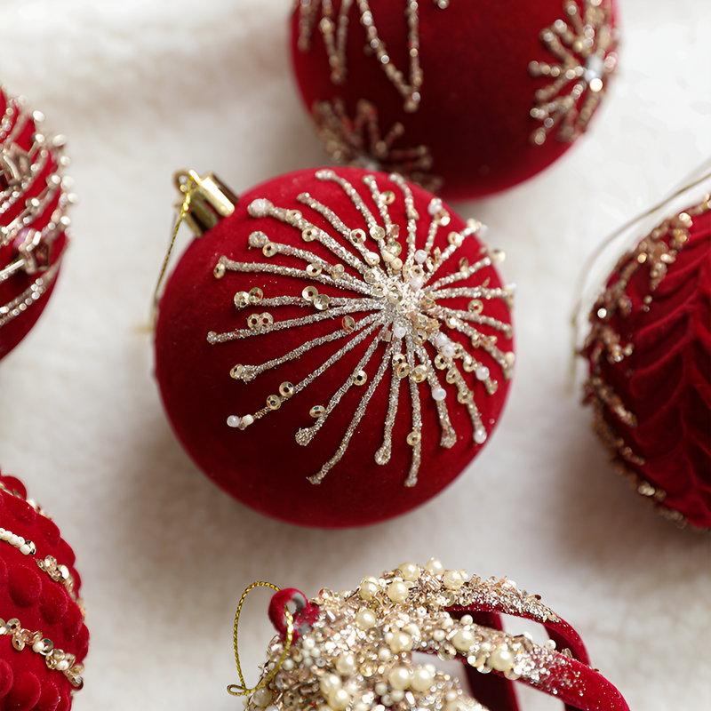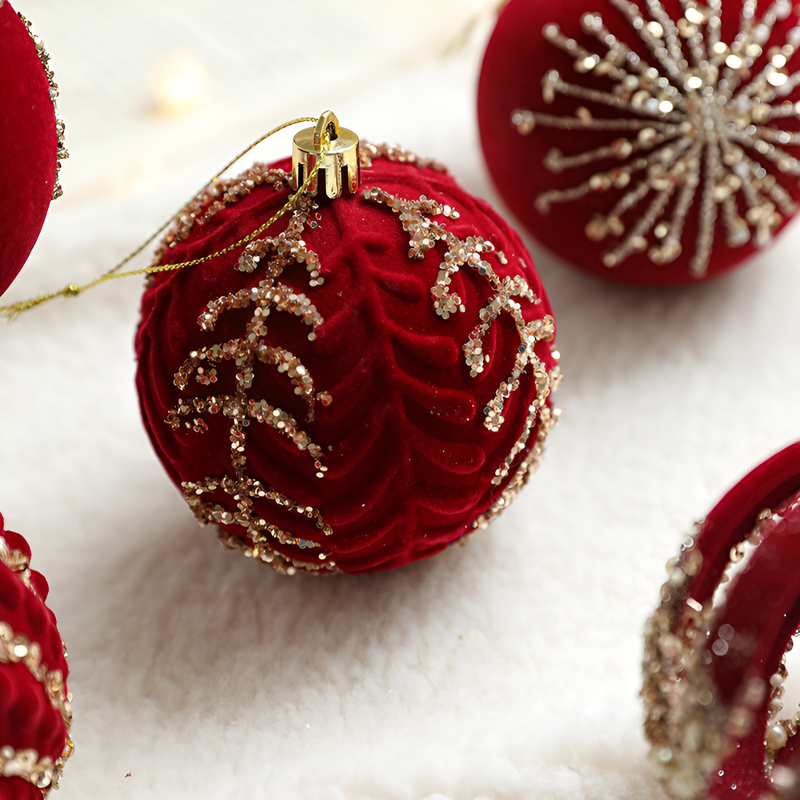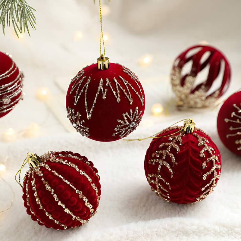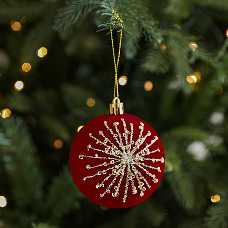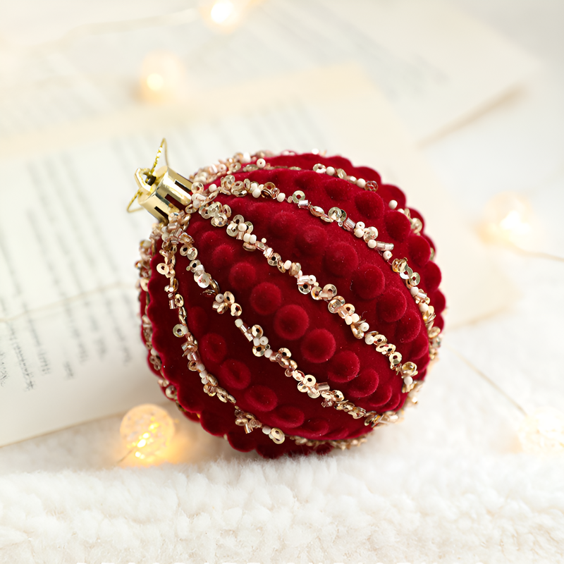 聖誕球酒紅色植絨掛件